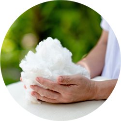 具有高延伸性、高回弹性的合成纤维,能赋予织物良好伸缩弹性、弹性回复率佳及蓬松感。常见的有氨纶/双组分涤纶等。 弹性服装,给穿着者,美妙贴合、自如活动的体验。